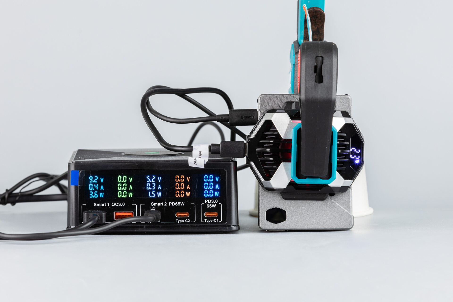 Cooler Master Cryo Phone Cooler คิดง่าย ๆ ก็คือ Peltier ที่มาพร้อมกับ heat sink กับพัดลมในตัว และไฟ LED ที่ควบคุมสีผ่าน app ได้ มีช่อง USB-C สองช่อง ช่องนึงสำหรับต่อกับ power bank รองรับ fast charge (9V) อีกช่องนึงสำหรับต่อมือถือ รองรับไฟ USB (5V) และมีแสดงอุณหภูมิในตัว วิธีใช้ก็เอาไปหนีบโง่ ๆ ไว้ที่ฝาหลังมือถือ เสียบไฟทิ้งไว้เฉย ๆ ที่อุณหภูมิห้อง (ราว ๆ 30°C) ก็มีน้ำควบแน่นให้เปียก ๆ ได้เหมือนกัน