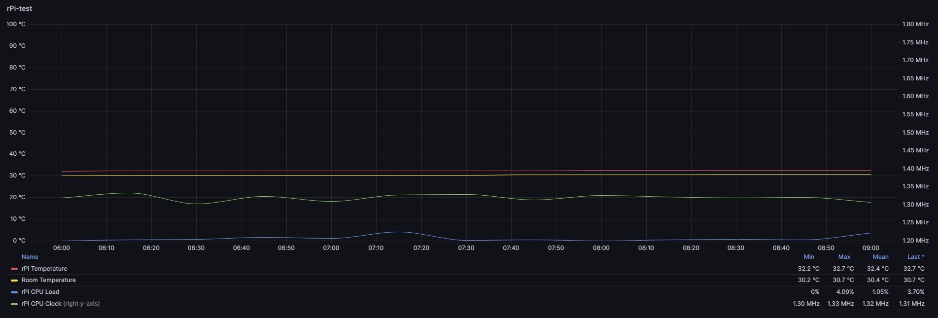 Raspberry Pi 4 ใส่ Cooler Master Pi Case 40 ติด Cooler Master Cryo Phone Cooler สั่งให้มีการทำงาน Full Load ทิ้งไว้ในห้อง Pi อุณหภูมิสูงกว่าห้องราว ๆ 27°C แม้ว่าตัว Pi จะรายงานมาว่าตัวมันเองอุณหภูมิอยู่เกิน 70°C แต่ตัว Cooler Master Cryo Phone Cooler รายงานอุณหภูมิไม่เกิน 39°C เท่านั้น